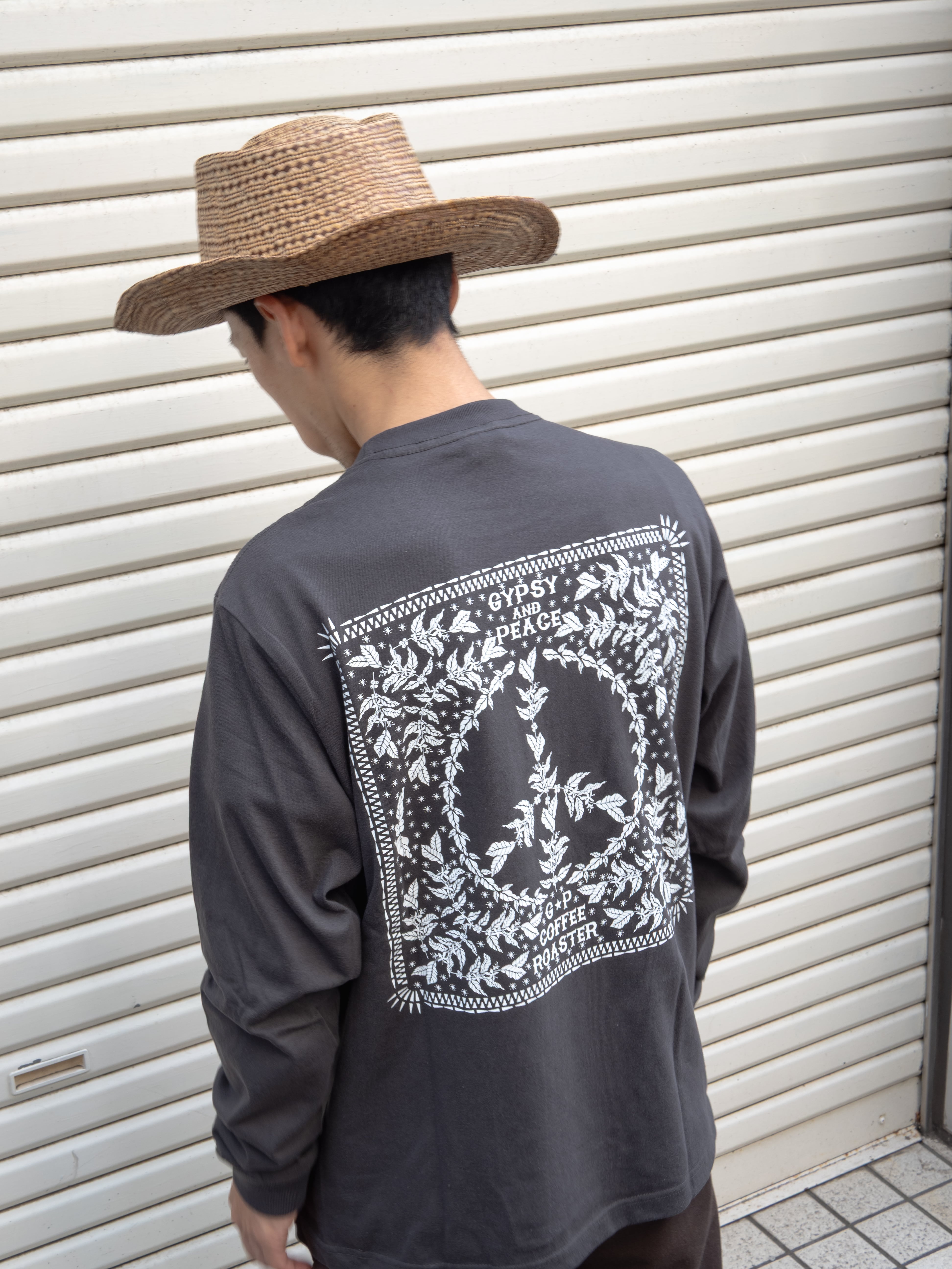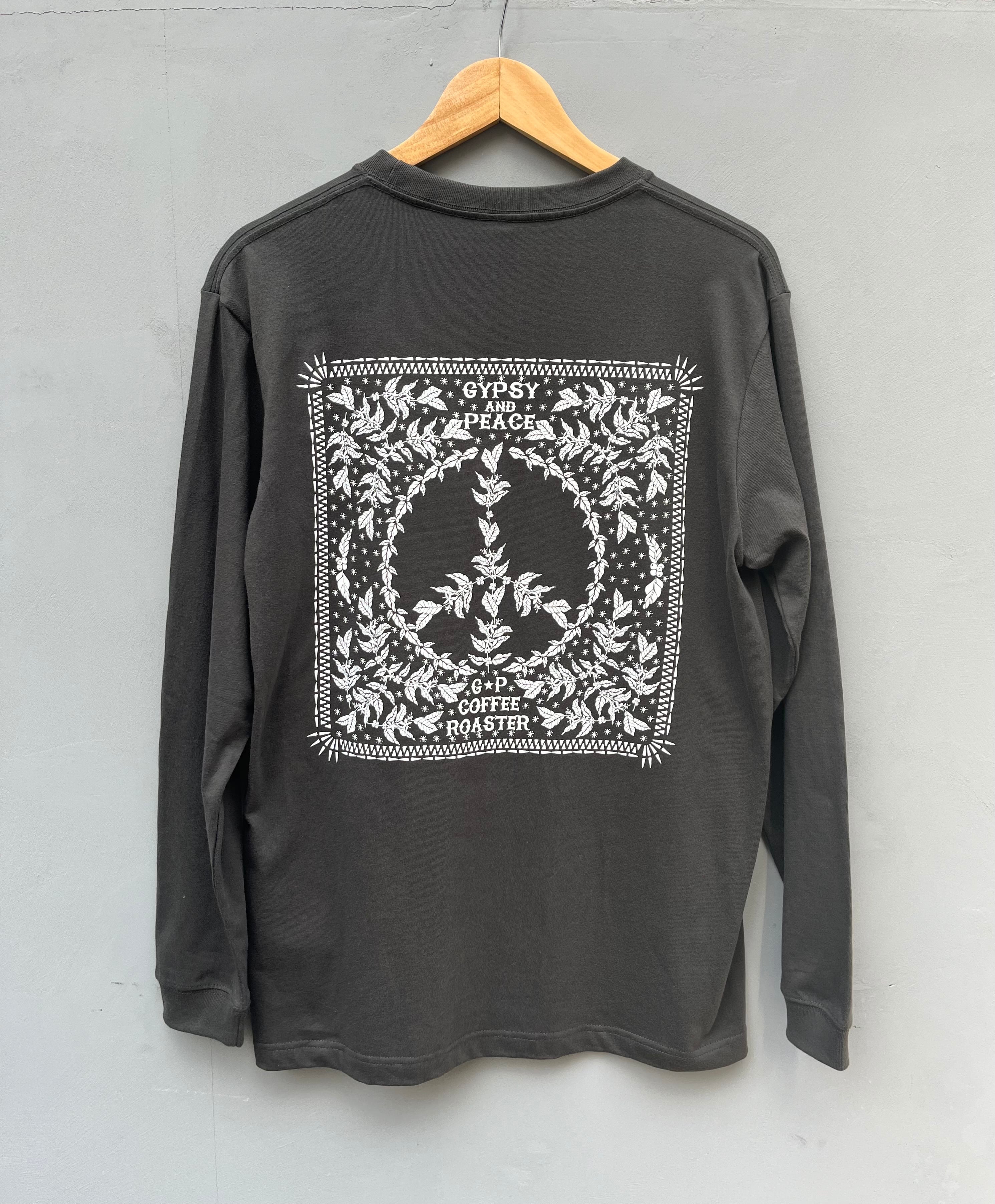 左胸にはGPのロゴマーク、そして背中にはコーヒーチェリーでピースマークをあしらったグッドデザイン。