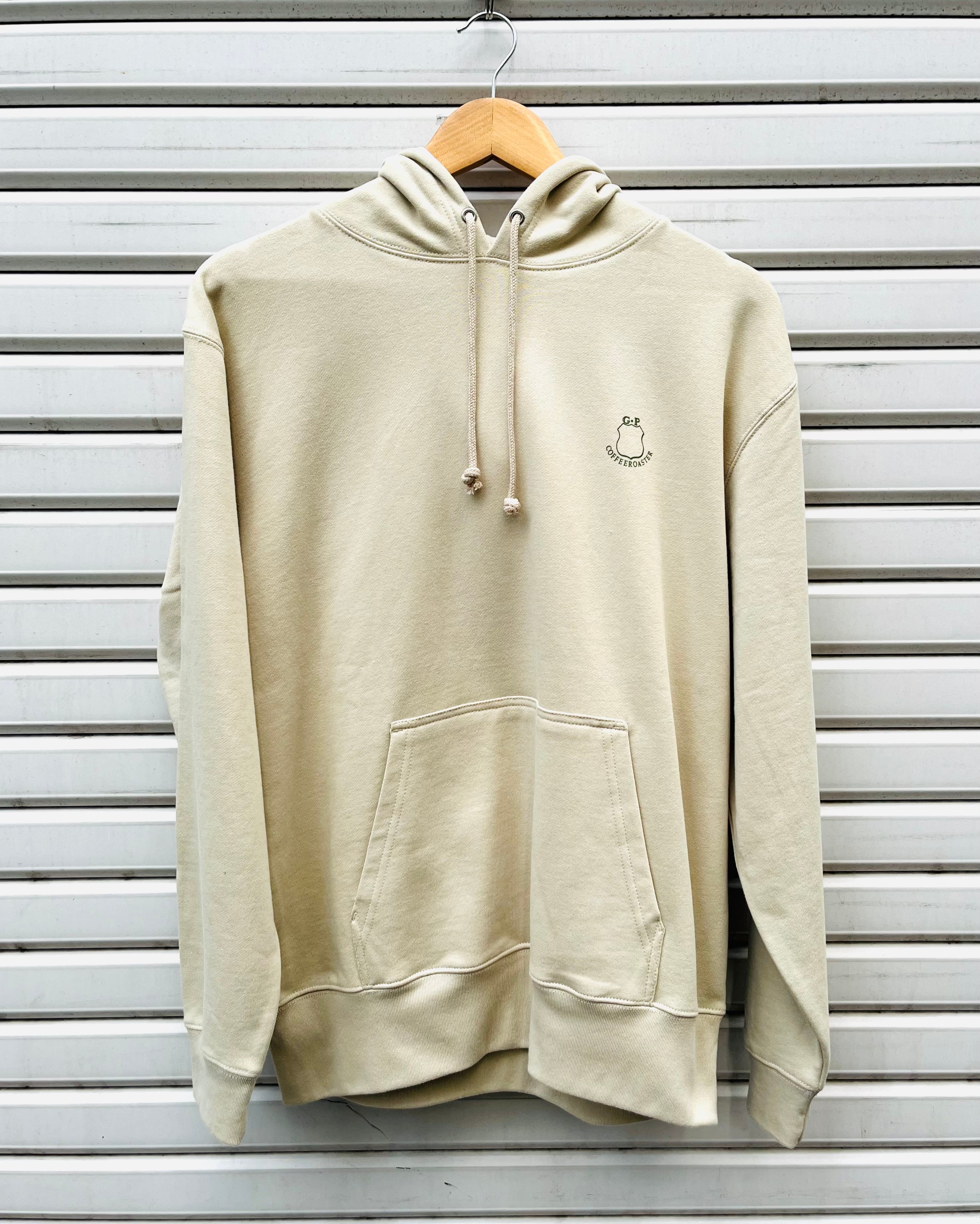 左胸にはGPのロゴマーク、そして背中にはコーヒーチェリーで PEACEマークを。